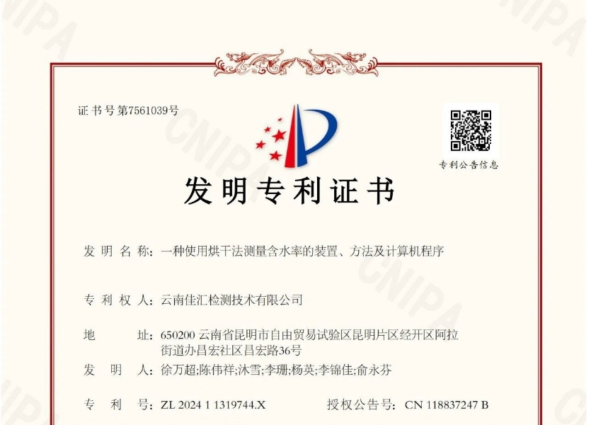 喜報(bào)!云南佳匯檢測(cè)技術(shù)有限公司獲得三項(xiàng)檢測(cè)專利